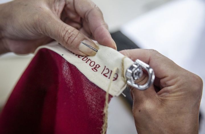 Selv om systuen ligger langt unna, sys våre flagg på nøyaktig samme måte som da Oluf Langkilde under 2. verdenskrig bestemte at han, i tillegg til å reparere Sjøforsvarets flagg, også ville sy helt nye flagg.
