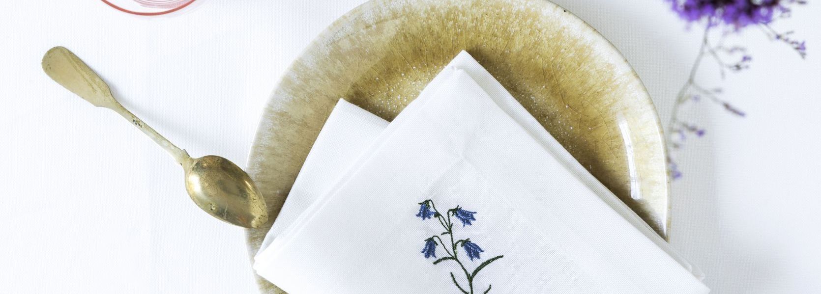 Vi går mot lysere tider. Dagen er allerede blitt lengre og før vi vet det, så er det igjen sommer med duftende hager og lysere netter. Den skandinaviske vår og den nordiske sommer er helt spesiell som kun finnes på våre nordlige breddegrader. Kulden slipper taket og vi kan endelig begynne med å sitte utenfor med en kopp kaffe i solen. Så kommer påsken med sitt spede løfte om nytt liv og alt det grønne begynner å spire. Og ved St, Hansaften står naturen i fullt flora på det aller vakreste. Og nettopp den skandinaviske vilde natur har inspirert oss til kolleksjonen FLORA. Her finner du de vakreste vilde blomster brodert på vevet flaggduk. Byd lyset, sommeren og FLORA inn på bordet og sped opp med ville blomster fra grøftekanten. Gå på oppdagelse her under.
